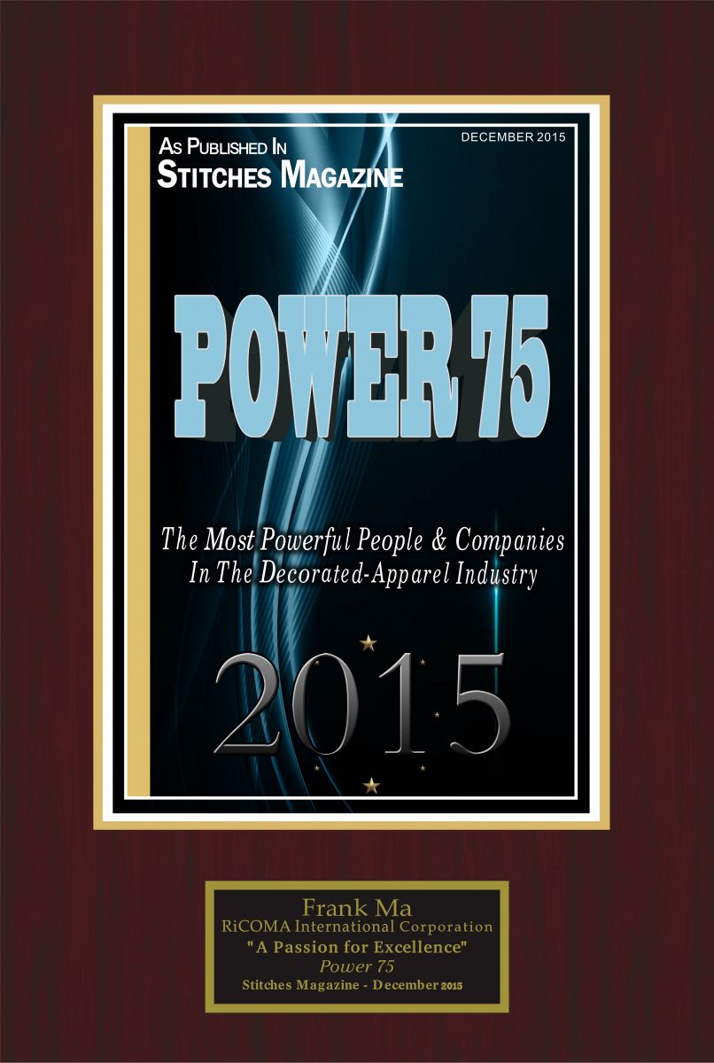 美國(guó)《STITCHES》雜志12月刊公布了2015年行業(yè)最具影響力的75家企業(yè)和個(gè)人,瑞珂瑪國(guó)際股份有限公司及其董事長(zhǎng)Frank Ma連續(xù)五年榮登此榜,今年為第五個(gè)年頭。雜志評(píng)論到:“榮登此榜單的企業(yè)及個(gè)人將會(huì)影響著這個(gè)行業(yè)2016年及以后的發(fā)展方向”。