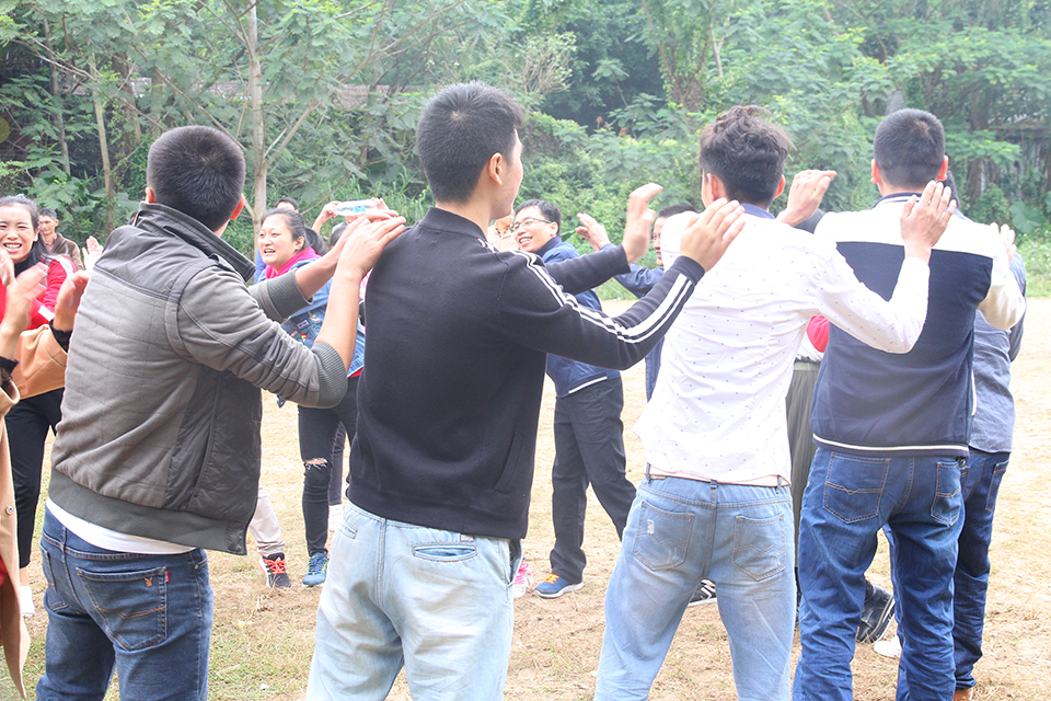 “風吹草動”、“花落花開”拓展訓練游戲,大家手拉手,肩并肩,腳挨腳,彼此保護,彼此支撐,緊緊的依靠在一起,團隊之花的盛放來自于彼此之間的支撐和信任。