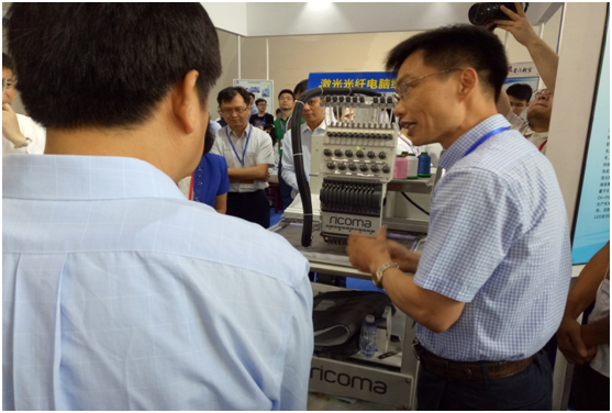 在會上,瑞珂瑪和華南師范大學聯合研發的帶激光切割裝置的繡花機,吸引了眾多