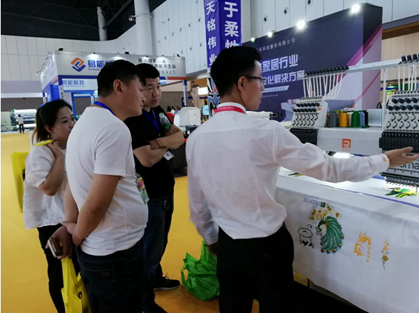一的繡花機品牌,可以為各類家居產品提供DIY刺繡,滿足了人們對個性化生活的追求,是本次展會的一大亮點,吸引了眾多客戶
