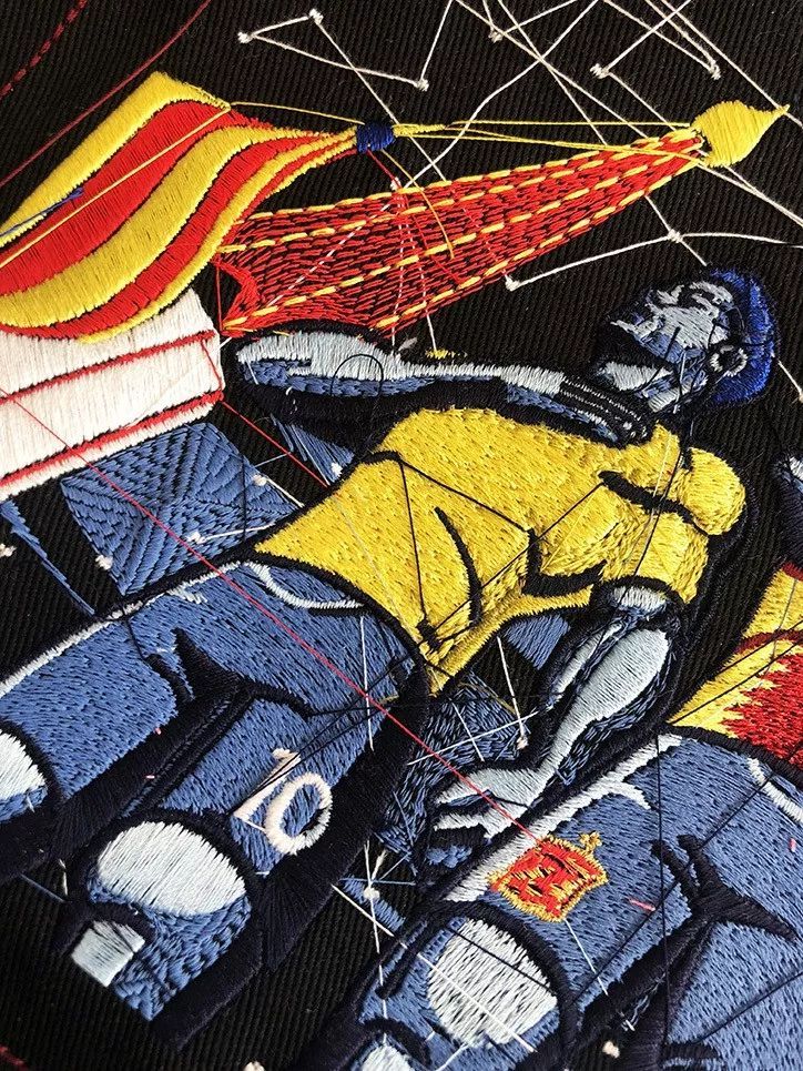 每一幀都對應著一片28cm x 19cm大的刺繡作品。創作團隊需要先將插畫畫面輸入刺繡機器,然后再將實際繡好的掛毯