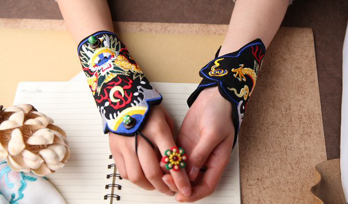 簡單浪漫、復古民族風手套中國風龍紋刺繡花護腕套