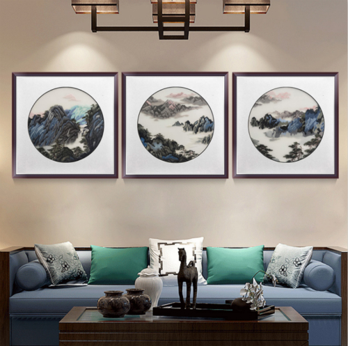 刺繡裝飾畫是一個體現藝術品位和裝扮空間的不二選擇,那么客廳宜掛什么畫呢?其實選擇什么樣的畫,最主要還是要看自己家里的裝修風格,一定要搭配好,這樣才能產生出一加一大于二的效果,讓客廳的裝修更上一層樓。