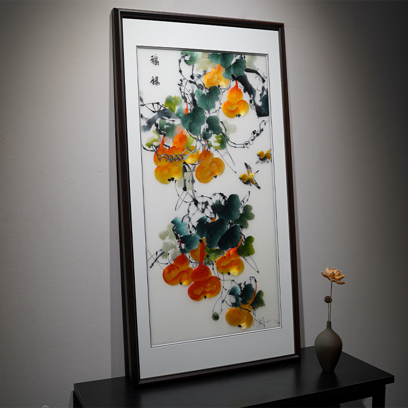 想要打造一個高規格的家,一幅有品位的刺繡裝飾畫肯定是少不了的。客廳是家人的主要活動區域也是待客的主要場所,更需要一個有品位的裝飾,來彰顯家居主人的身份和地位以及學識、修養,所以需要高雅的刺繡裝飾畫起到畫龍點睛的作用,來表達家居主人的審美情趣。