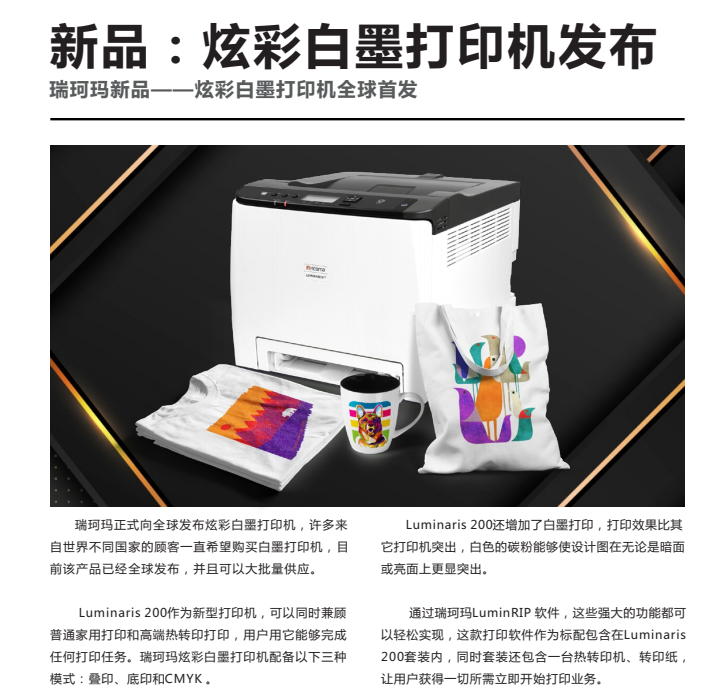 瑞珂瑪新品——炫彩白墨打印機全球首發