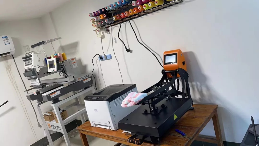 黎先生:結合我們的業務需要,我選擇了繡花機PV1201、平板熱轉印機、白墨打印機。因為PV性價比高,非常適合我們這種私人訂制業務,平板熱轉印以及白墨打印機我們也是用來印制一些成衣。