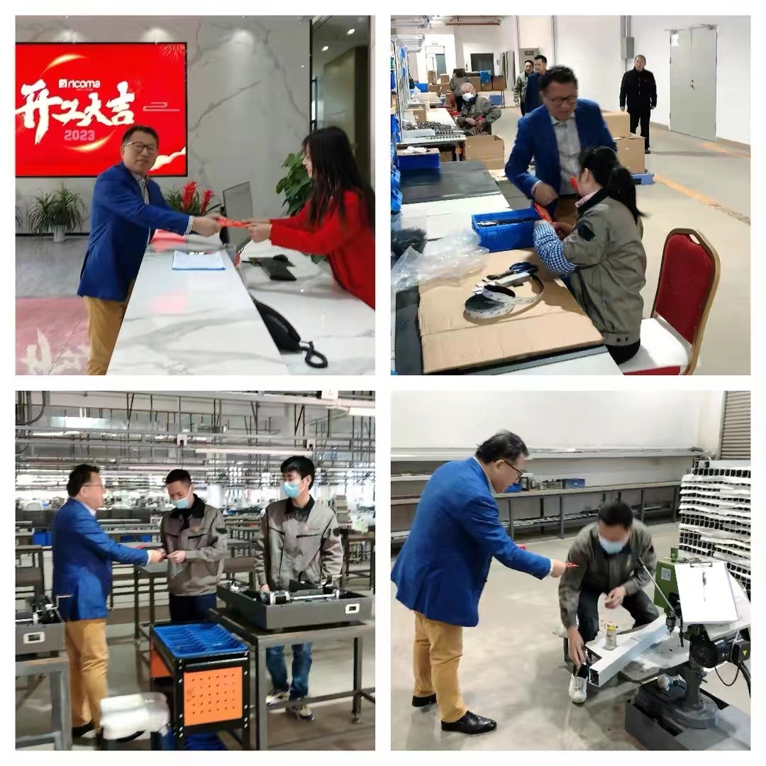 1月29日,瑞珂瑪迎來了2023年春節(jié)復(fù)工的第一天,公司董事長、總經(jīng)理及各部門領(lǐng)導(dǎo)人列隊在公司門口迎接員工返崗,并向員工表達(dá)新年的問候,歡歡喜喜迎來了開門紅,開啟新年生產(chǎn)新序幕。