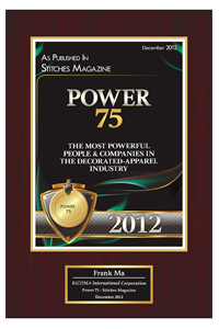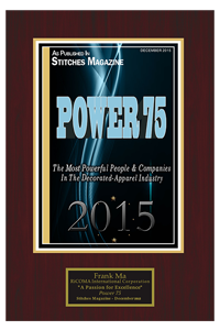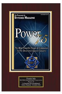 公司 連續5年 被美國最權威繡花雜志<<Stitches>>評為 行業最具影響的75家企業之一
