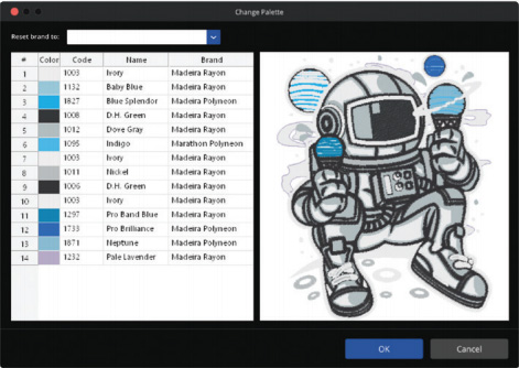 您可以自動打版和編輯花樣、創(chuàng)建字體、將花樣元素轉(zhuǎn)換為不同的刺繡類型、