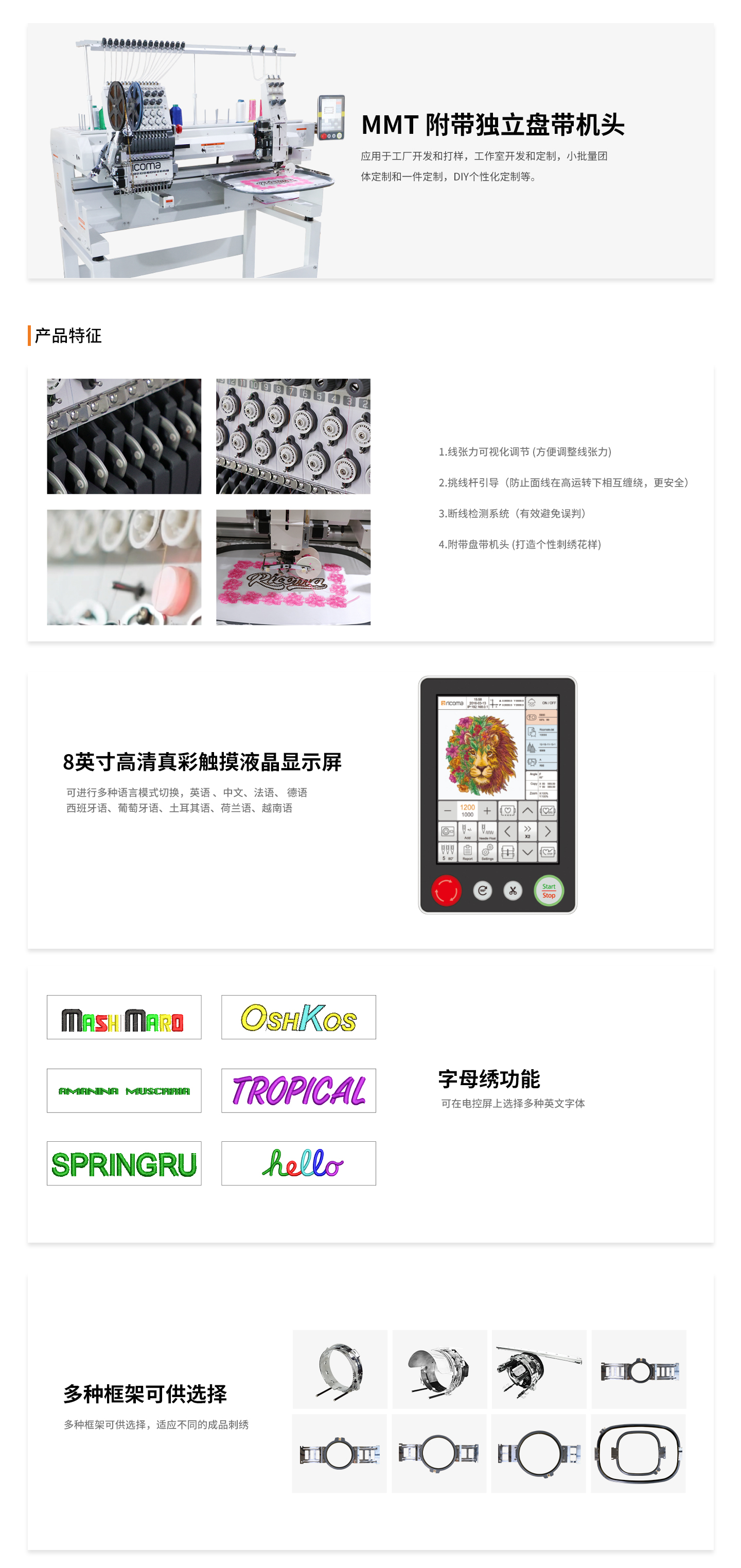 ● 多功能繡花機適用于各種生產需要