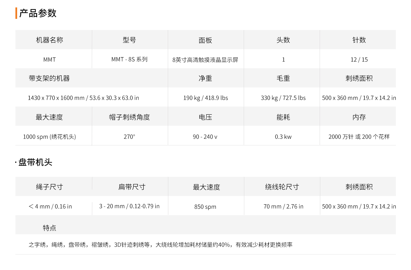 ● 盤帶繡的線架和盤帶機頭的電機分開,避免相互干涉